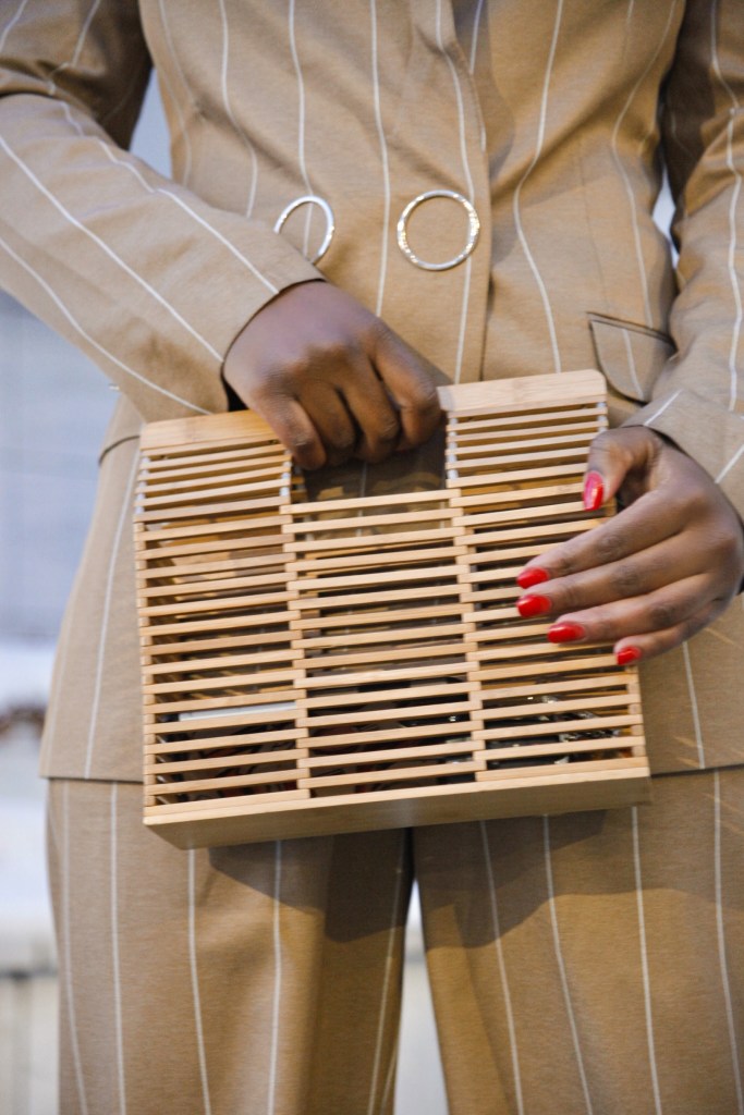 Work suits don’t always have to black and white. Step out of your norm and try something different. Add a shirt or a turtle neck to this look and you are ready for work. I folded the pants at the bottom because the tapered pants did not flatter my body.