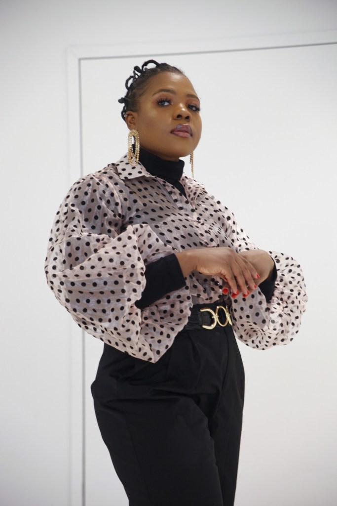 Shoulder pads are old skool and I love them. They make your shoulders broad. This look is very chill and old skool, so adding a see through belt maintains the vibe of the look.
